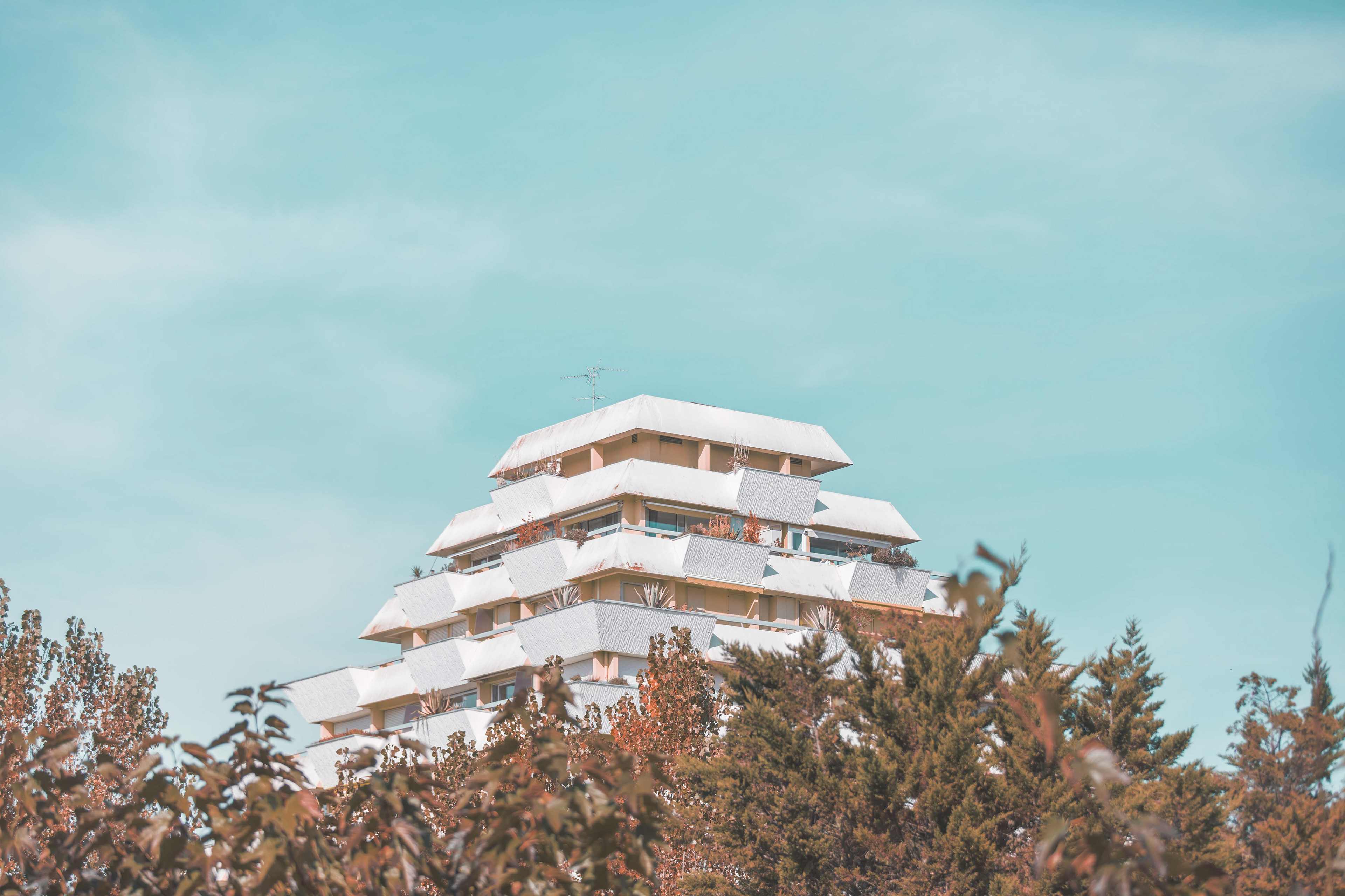 975. The architect is largely inspired of the Aztecs pyramids and the modernist architecture in Brazil with Oscar Niemeyer.